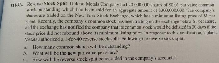 Solved El1 9a Reverse Stock Split Upland Metals Company Had Chegg Com